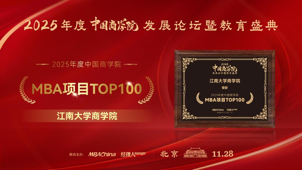 • 江南大學(xué)商學(xué)院斬獲“2025年度中國商學(xué)院MBA項(xiàng)目TOP100”等多...2025-12-01